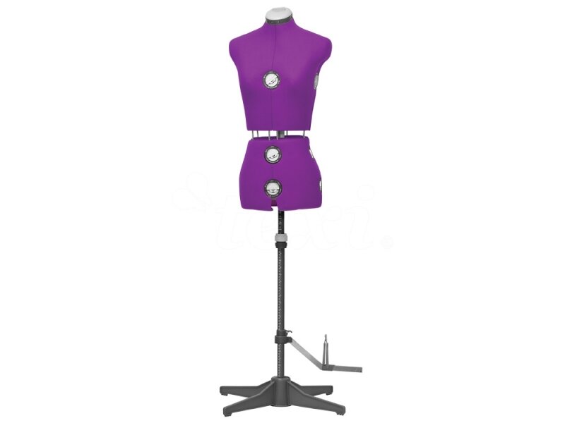 Vďaka 8 nastaviteľným častiam máte možnosť pri TEXI DRESS FORM predĺžiť pasovú líniu. Nastavenie veľkosti zaisťuje 12 zapustených otáčavých kotúčov s okienkami (pri otáčaní kotúčiky si v okienkoch nastavíte požadované miery, kotúče majú až 10 polôh). Figurína je potiahnutá nylonovým povlakom s chrbtom z pevného penového materiálu, ktorý uľahčuje prácu so špendlíkmi a značením materiálu. Krajčírska panna TEXI DRESS FORM má zabudovaný zarovnávač spodnej dĺžky sukní. Dodáva sa vo fialovej farbe.
