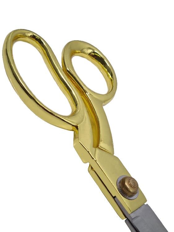 obchod@raj-sitia.skKrajčírske nožnice celokovové zlaté (21,5 cm) sú krásne a pevné nožnice v zlatom dizajne. Nožnice pôsobia profesionálnym dojmom a sú pohodlné v ruke. Čepele nožníc sú vyrobené z ocele. Týmito nožnicami môžete strihať strihy a mnoho druhov látok. Nožnice sú na bežné hobby šitie.