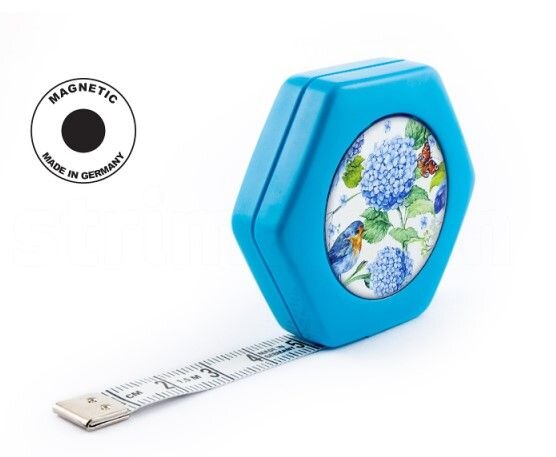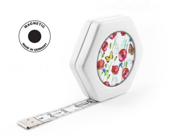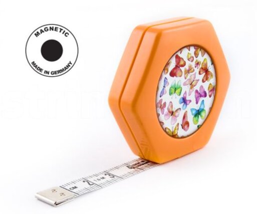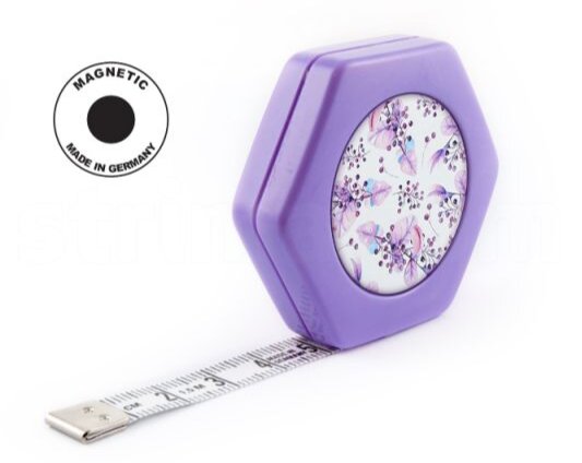 Veľmi kvalitný krajčírsky meter v krásnych farbách. Meter má dĺžku 150 cm značenú z oboch strán, je samonavíjací pomocou tlačidla a navyše je magnetický, takže ho môžete odložiť na čokoľvek kovového alebo naopak môže poslúžiť na odloženie špendlíkov. Meter je vyrobený zo skleneného vlákna, čo zaručuje vysokú životnosť.