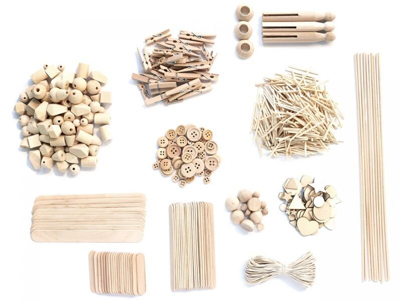 Kreatívny box - DREVO (590 dielov) je veľká sada drevených kreatívnych potrieb na ručné tvorenie prianí, darčekov, dekorácií a podobne. Kreatívna súprava pre deti i dospelých.