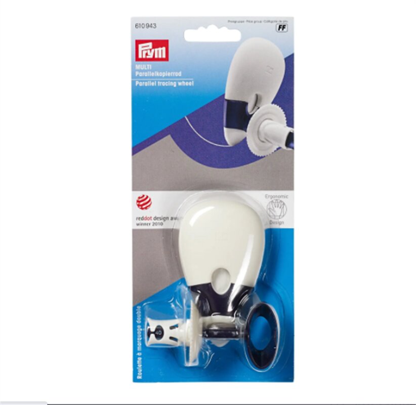 Kriedové riadielko kopírovacie súbežné - PRYM je riadielko, ktoré dokáže značiť súbežnosť šitia a strihacej línie. Ergonomicky tvarovaná rukoväť.
