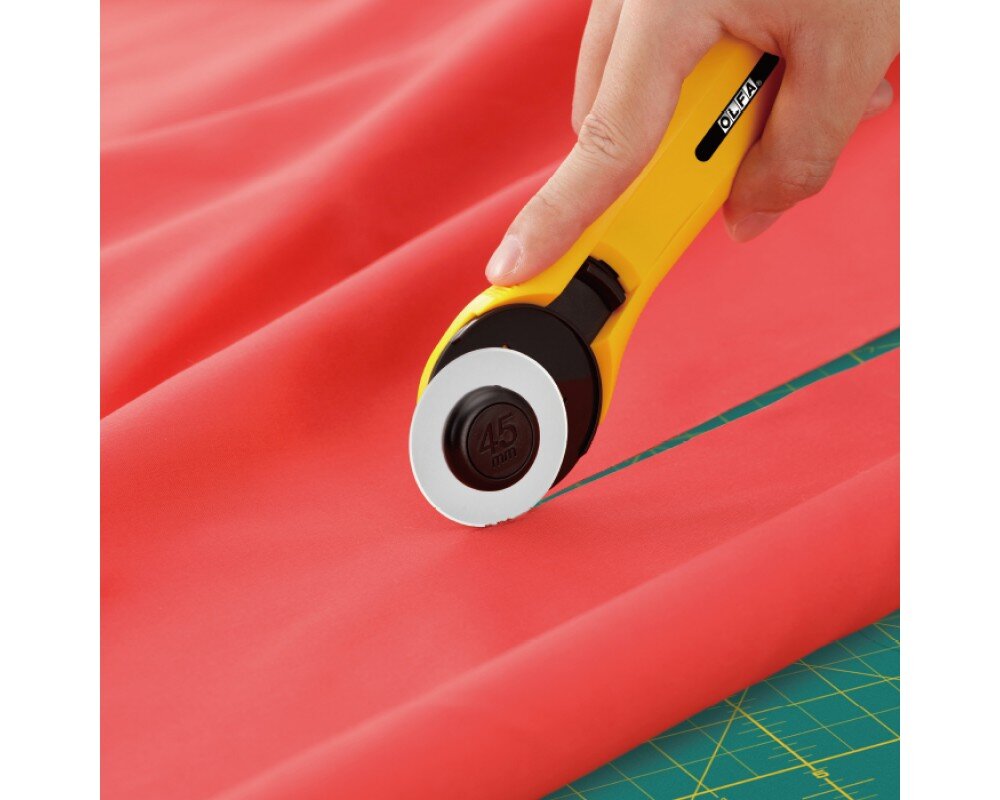 obchod@raj-sitia.skKruhový rezač Olfa RTY - 2/C - 45 mm je nový kruhový rezač s unikátnym systémom výmeny rezacieho kolieska jednoducho na nacvaknutie. Rezacie koliesko Olfa je kvalitný výrobok, ktorý zaisťuje presné rezanie látok aj vo viacerých vrstiach. Obsahuje výsuvnú bezpečnostnú ochranu čepele. Priemer rezacieho kolieska 45 mm.
