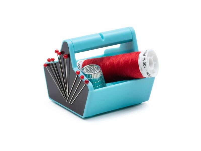Malý a veľmi užitočný košík, vďaka ktorému budete mať teraz všetky dôležité šijacie potreby po ruke. Mini košík dokáže pojať špendlíky, šijacie nite, náprstok a ďalšie drobnosti, ktoré sú na šitie nevyhnutné. Košík má obe bočné časti magnetické, poslúži teda aj ako magnetický ihelníček. Ďalej je vybavený rezačom nite, ktorý je uložený na rukoväti košíka. Košík má na spodnej strane silikónové zarážky, ktoré zaistia protišmykovú podporu. S týmto košíkom určite nechytíte vedľa.