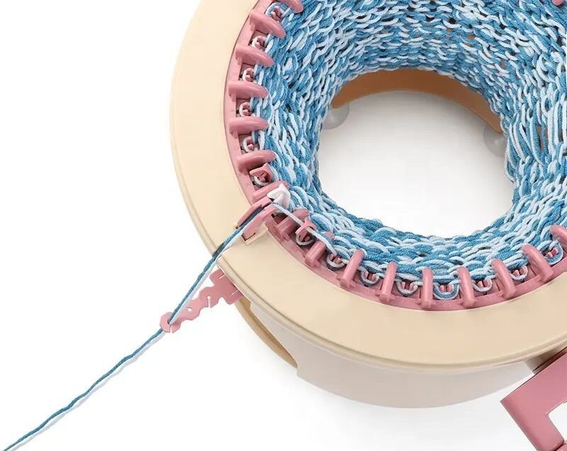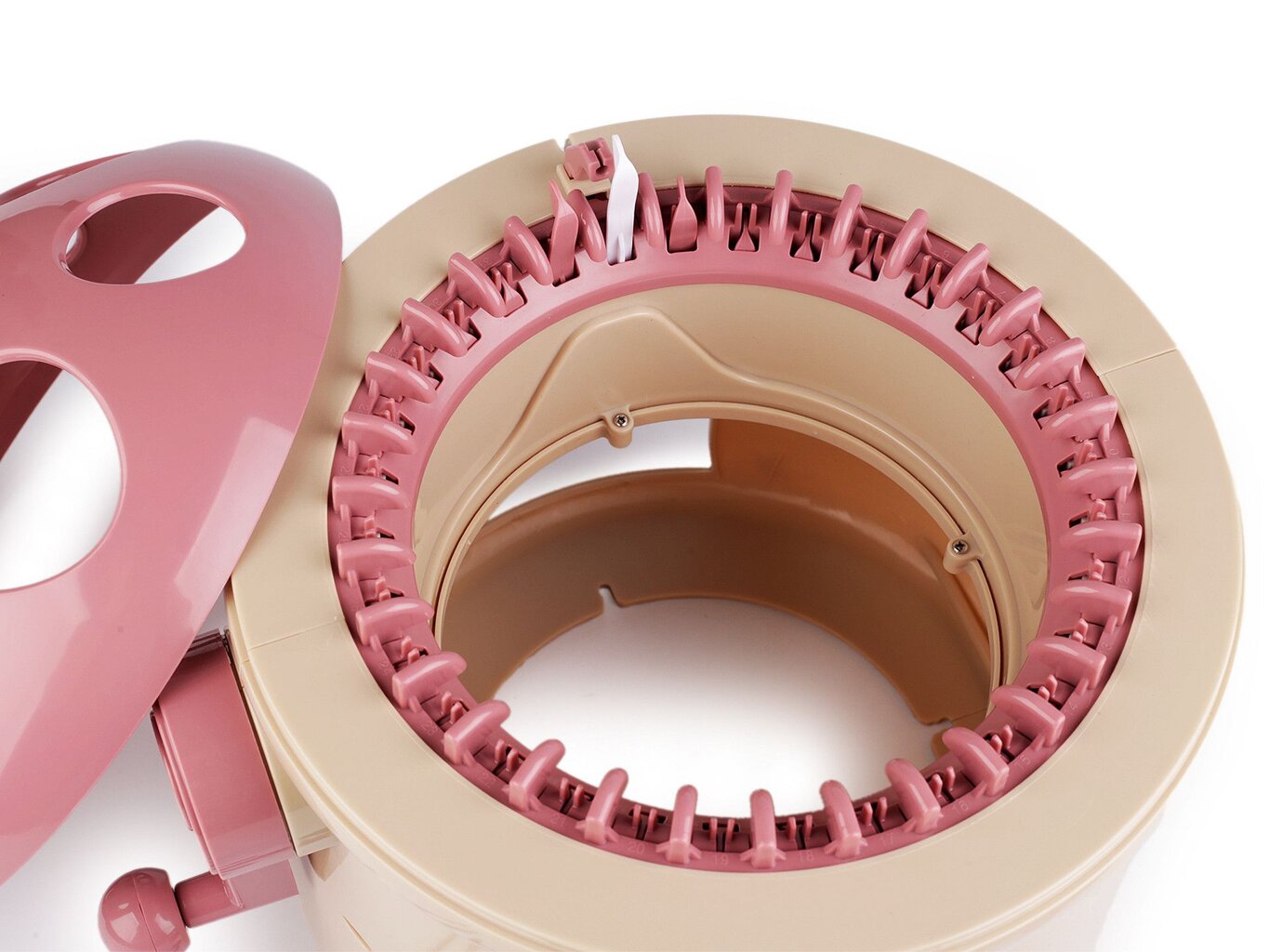 Priemer pletacej časti je 18,5 cm, dookola je 32 pletacích háčikov (ihiel).