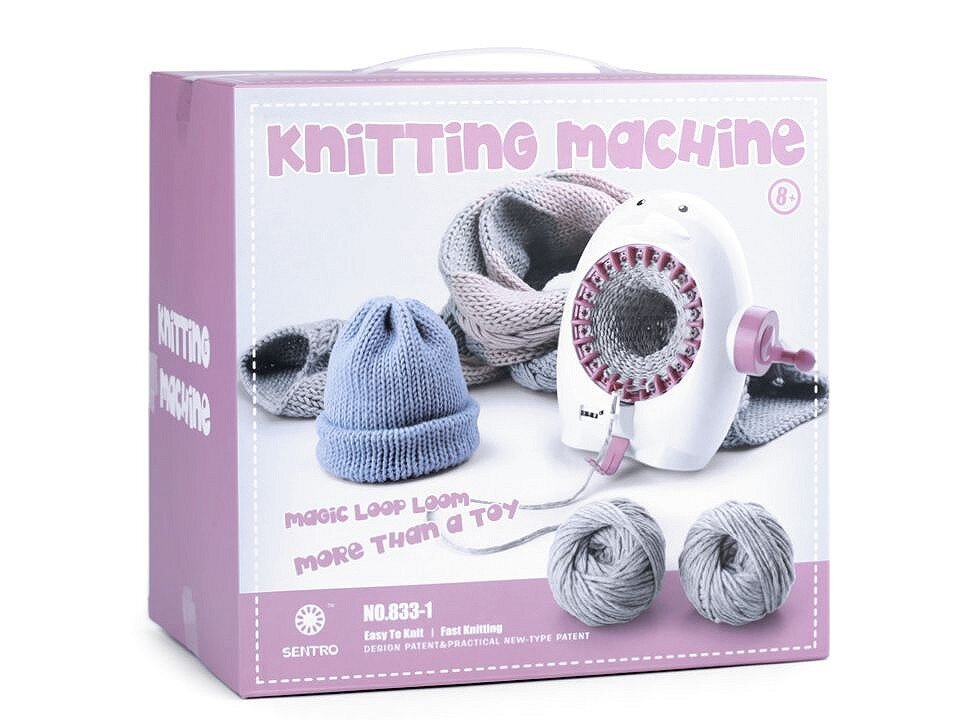 Balenie obsahuje 1 pletací mlynček, 1 plastovú ihlu na priadzu, 1 plastový háčik, 2 klbká priadze.