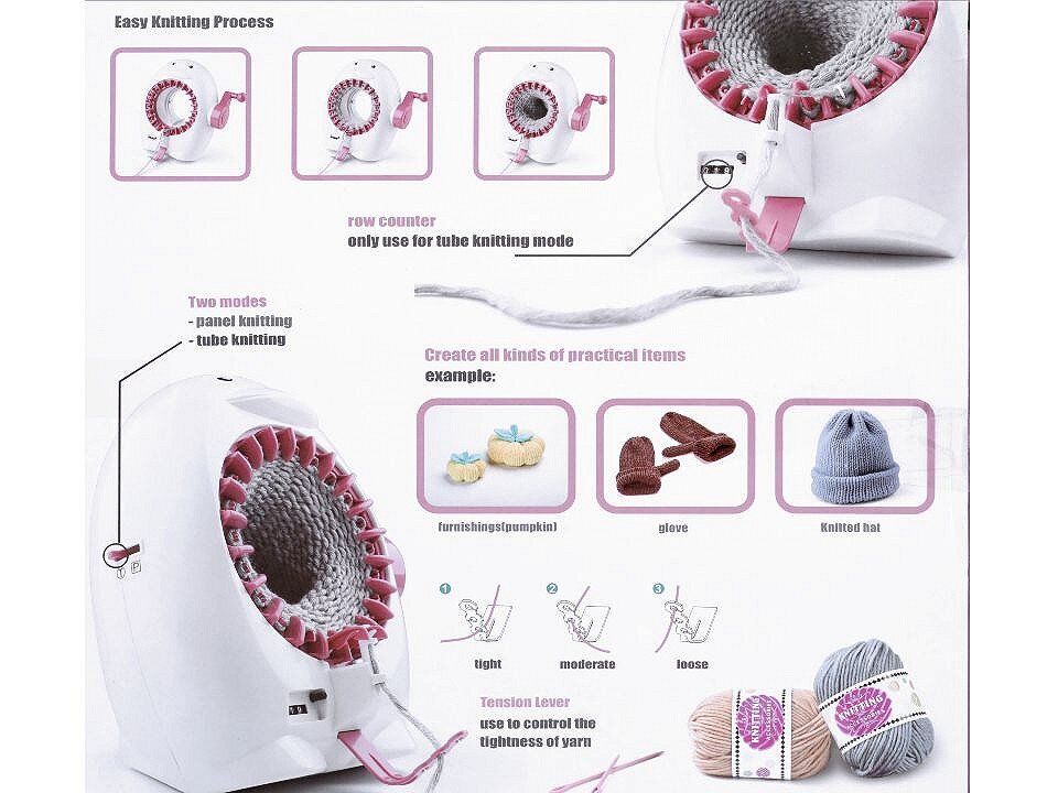 obchod@raj-sitia.skMlynček na pletenie je skvelý pomocník pre ľahké a hlavne rýchle pletenie detských čiapok, rukavíc a ďalších tunelov aj pruhov s 22 okami. S týmto strojom nie je potrebné, aby ste vedeli pliesť s ihlicami. Podľa podrobného priloženého návodu, ktorý obsahuje aj obrázky, dokáže pliesť naozaj každý. Pletací strojček je vhodný aj pre deti približne od 7 rokov alebo začínajúce pletařky. Mlynček je vybavený aj počítadlom radov.