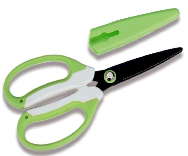 Nožnice, s ktorými zvládnete všetko! Multifunkčné nožnice s mikrozubom, ktoré majú veľmi široké použitie a nesklamú Vás, nech už striháte čokoľvek. Čepeľ nožníc je potiahnutá čiernym teflónom a má tak protišmykovú úpravu, zároveň zabraňuje zachytávaniu nečistôt na nožniciach. Ergonomická rukoväť pre pohodlný úchop pri dlhom používaní. Skvelý je aj bezpečný kryt čepele. Nožnice využijete v šijacej dielni, kancelárii, kuchyni, v dielni aj garáži.