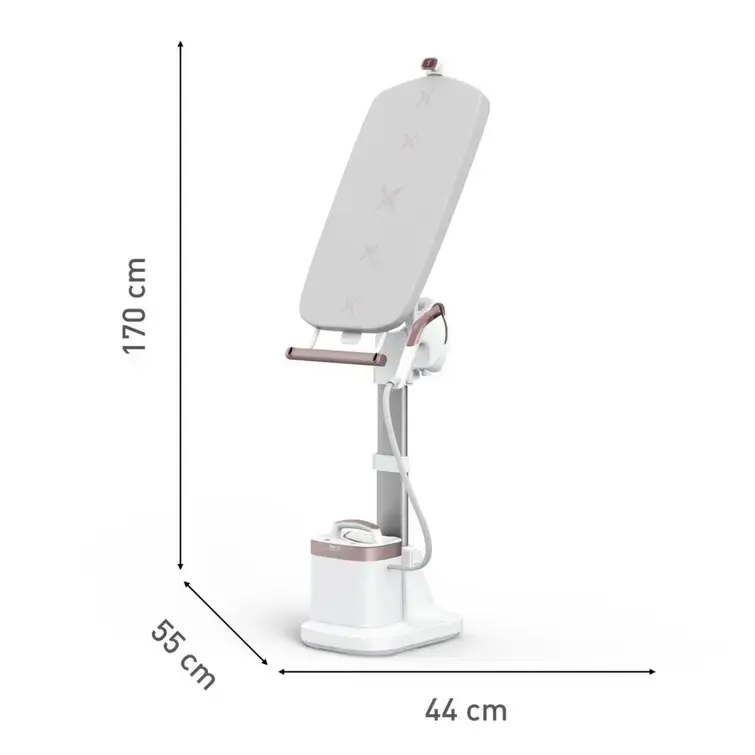 Už žiadne zdĺhavé postávanie pri žehliacej doske. Mobilný naparovač odevov ponúka nový, pohodlnejší a efektívnejší spôsob žehlenia. Naparovač Tefal kombinuje žehlenie a naparovanie s výkonnou parou a jednoduchou manipuláciou. Naparovač má polohovateľnú dosku a LED technológiu osvetlenia umiestnenú v špičke žehličky, vďaka čomu dosiahnete dokonalé odstránenie všetkých záhybov. Naparovač má ľahkú konštrukciu a navyše je dizajnovo veľmi pekný, takže ho môžete bez okolkov nechať stáť v kúpeľni či spálni. Okrem 100% starostlivosti o Vaše odevy dokáže naparovač tiež osviežiť a dezinfikovať bytový textil aj nábytok. Naparovač má odnímateľnú základňu pre ľahké žehlenie nábytku či bytových doplnkov ako je pohovka, záclony a podobne. Táto revolučná žehlička Vám dopraje veľa voľného času, ktorý by ste inak strávili pri žehliacej doske.