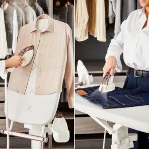 Naparovač odevov Tefal Ixeo Vision kombinuje naparovanie a žehlenie. Mimoriadne premyslený systém naparovania na odstránenie každého záhybu. Polohovacia žehliaca doska, odnímateľný naparovací systém a extra ľahká parná hlavica.