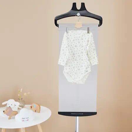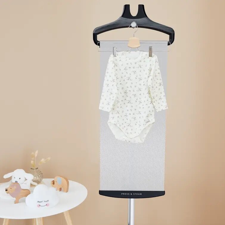 Náš patentovaný a jedinečný systém vertikálního stojanu Press & Steam zajistí dokonalé výsledky díky rovnému povrchu, na který můžete své oděvy přitlačit.