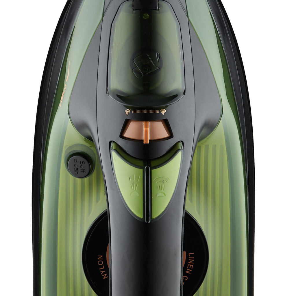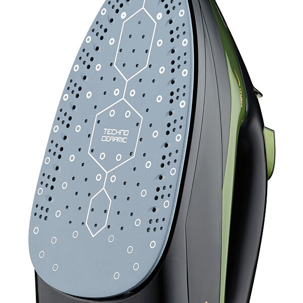 Moderná a kvalitná naparovacia žehlička s keramickou žehliacou plochou a výkonom 3000 W. Žehlička je vybavená parnou tryskou s výkonom 126 g/min a konštantným výstupom pary 25g +/- 5g/min. Nechýba ani rozprašovacia tryska na kropenie bielizne a otvory pre paru po celej žehliacej ploche, zaručujú tak dokonalé žehlenie. Funkcia "parný ráz" pomôže s rozžehlením prekladov a nechcených zámikov a rovnako tak dobre poslúži pri zvislom naparovaní ľahko pokrčených odevov. Nemusíte tak žehliť len na doske, ale aj na ramienku. Výhodou tejto žehličky je aj fakt, že je pripravená na žehlenie takmer ihneď po zapnutí. Nastavenie teploty v závislosti od typu žehleného materiálu je samozrejmosťou. Množstvo pary je možné nastaviť podľa potrieb žehleného materiálu, je možné aj žehlenie bez pary. Žehlička je vybavená automatickým vypnutím po 8 minútach nečinnosti vo zvislej polohe a dokonca po 30 sekundách v polohe vodorovnej. Žehlička je vybavená systémom odvápnenia, používa sa do nej teda bežná voda z vodovodu!!