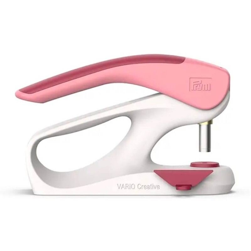 Ručný lis Vario Creative Tool, ktorý sa stane parťákom na nitovanie a dierovanie odevov. Aplikácia priechodiek 4-14mm, ozdobenie džínsov nitmi, pripevňovanie patentiek na detské oblečenie, aplikovanie očiek aj dierovanie otvorov do mikiny pre šnúrku, toto všetko urobíte ľahko as minimálnou námahou pomocou kreatívneho nástroja Vario. Nástroj Vario má ergonomickú rukoväť s mäkkým povrchom. Ďalej má tiež plastové nožičky pre bezpečné postavenie na stôl a po dokúpení upevňovacej svorky zostane nástroj Vario pevne na svojom mieste. Pri práci s nástrojom Vario ušetríte maximum energie, práca je totiž jednoduchá. Balenie obsahuje aj dierovacie nástavce veľkostí 2,5, 3,0, 3,5 a 4,0 mm. Nástroj Vario je plne kompatibilný so všetkými produktmi určenými pre kliešte Vario, vrátane nástrojov na aplikáciu.
