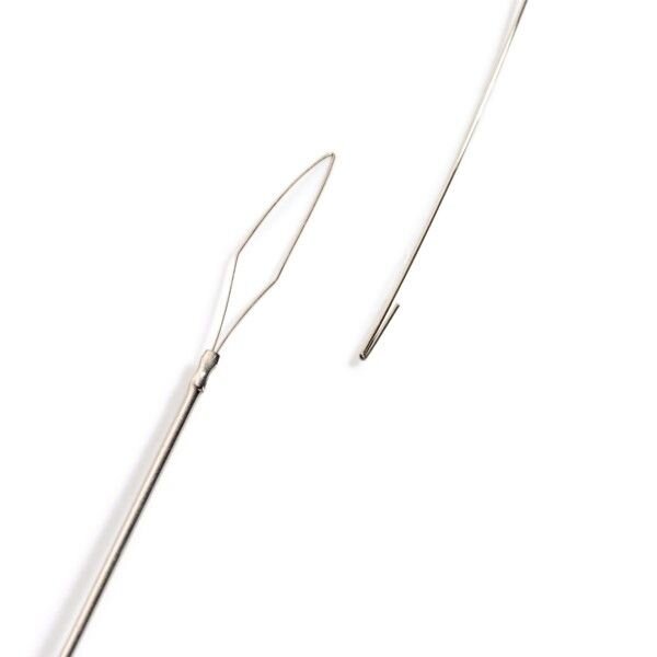 Táto navliekacia pomôcka od Prym je špeciálne navrhnutá na navliekanie overlockových šijacích strojov. Sada sa skladá z navliekača pre horný a spodný slučkovač a ďalšieho navliekača na ihly. Jemne zakrivený drôt z pružinovej ocele s bielou plastovou rukoväťou a háčikom sa najprv pretiahne spodným chapačom a niť sa upne do háčika. To znamená, že niť je možné ľahko pretiahnuť okom slučkovača. S horným chápadlom sa teraz manipuluje rovnakým spôsobom. Navliekač ihly funguje presne ako bežný navliekač šijacej ihly, ale má dlhú násadu vyrobenú z drôtu z pružinovej ocele a rukoväť z modrého plastu pre optimálnu manipuláciu.