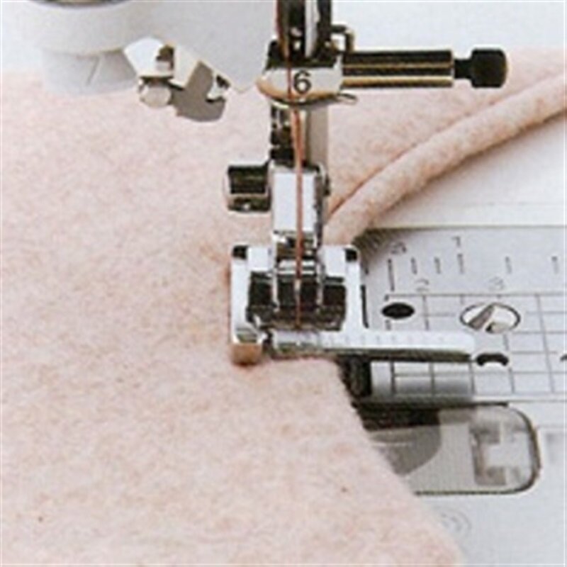 Šiaca pätka s pravítkom je určená na šitie pozdĺž okraja látky. Mierka na pravítku uľahčuje dodržanie fixnej vzdialenosti medzi švom a krajom látky. Táto alternatívna pätka je vhodná pre šijacie stroje s horizontálnym chapačom.