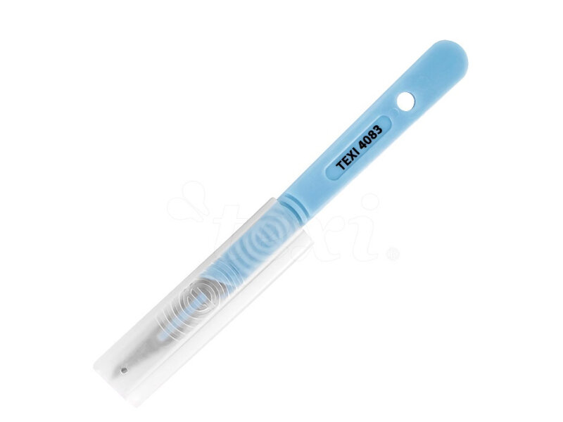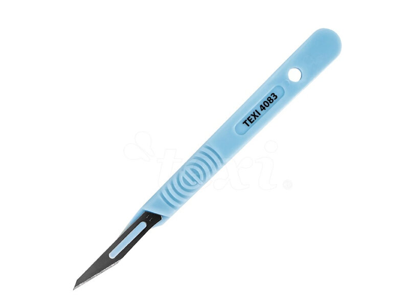 Veľmi ostrý nôž na presné prerezávanie vyšitých gombíkových dierok. Skalpel s čepeľou dlhou 1 cm. Nôž Texi.