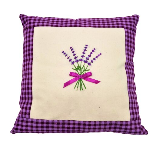 Obliečka na vankúš s výšivkou levandule je krásna obliečka na vankúš s vyšitou levanduľou. Obliečka má gombík na zapínanie.