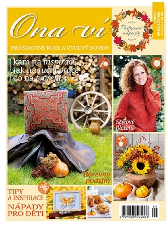 Časopis ona vie 5/2021 je kreatívny výtlačok plný jesenných nápadov. Jesenné dekorácie, báječné dobroty, patchwork, pletenie, tvorenie papierových zvieratiek