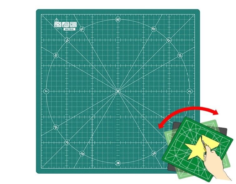 Veľmi kvalitná rezacia podložka Olfa RM, ktorá vyniká predovšetkým svojou rotačnou schopnosťou. Podložka sa dá otáčať o 390 stupňov pre zjednodušenie rezania uhlov a pohybov ruky, Vy tak máte prácu ešte pohodlnejšiu. Podložka tiež zabraňuje nechcenému pohybu rezacieho kolieska. Podložka má vyznačenú mernú sieť v cm a tiež uhly 30 °, 45 °, 60 ° a 90 °. Podložka je skvelá pre patchwork, quilting, výrobu z papiera aj iné kreatívne tvorenie a modelovanie.