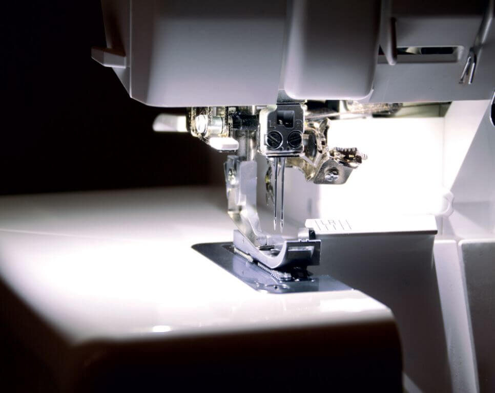 *pohodlné ovládanie zdvihu prítlačnej pätky na pravej strane stroja, kde je umiestnená aj páčka diferenciálneho posunu.