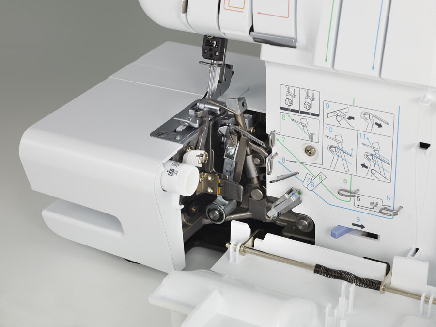 - Objednajte si súčasne kvalitné a napriek tomu cenovo výhodné overlockové nite v 5000 m návinoch a ihly vhodné pre tento overlock (každú farbu nití po 4 ks, pretože sa jedná o 4nitný overlock).