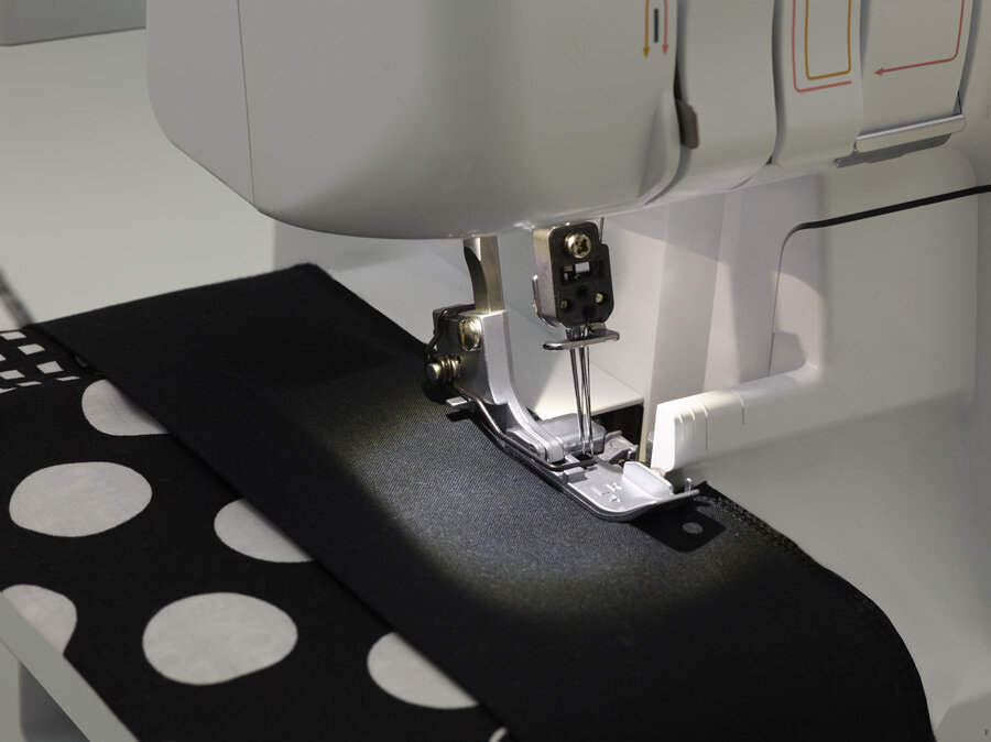 - Dokonale strúha, šije a pomocou špeciálnych pätiek našíva v jednej operácii