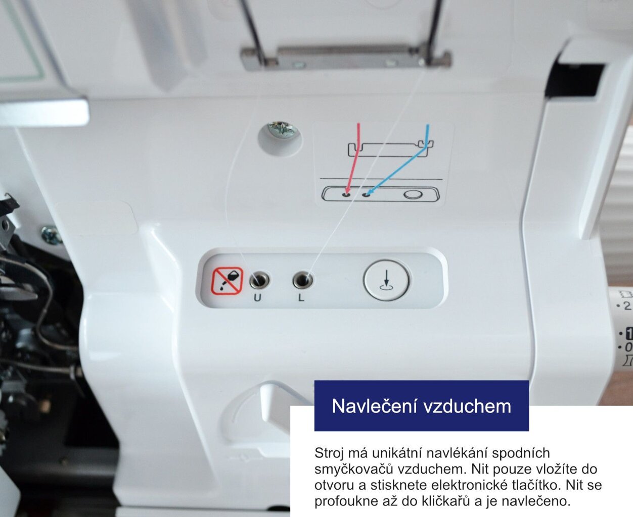 Nezklamal. Jsem starší člověk a výhody navlékání vzduchem a navlékačkem jehel velmi oceňuji.