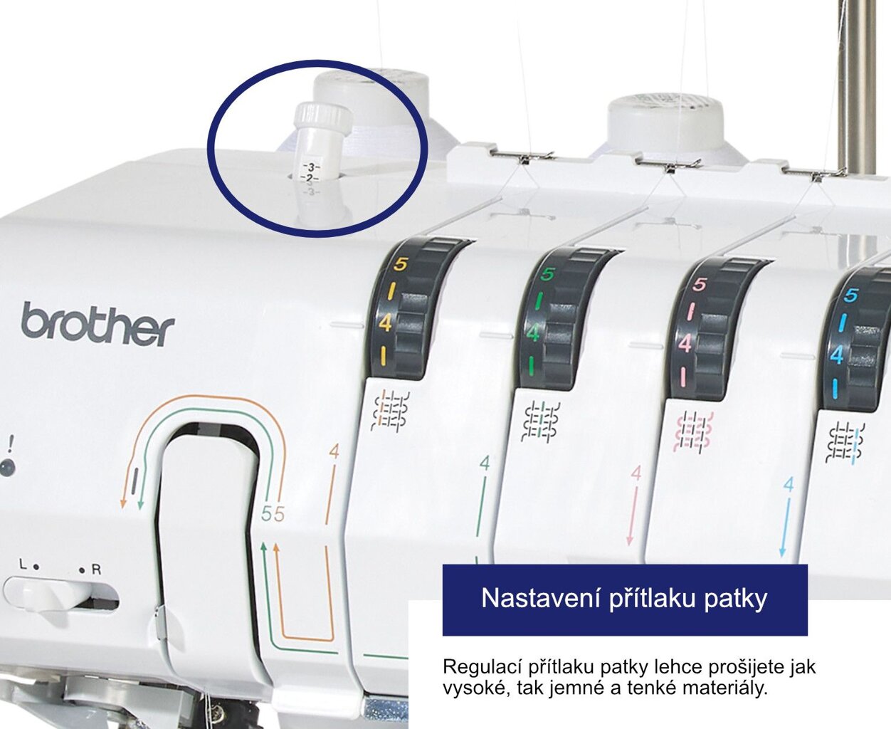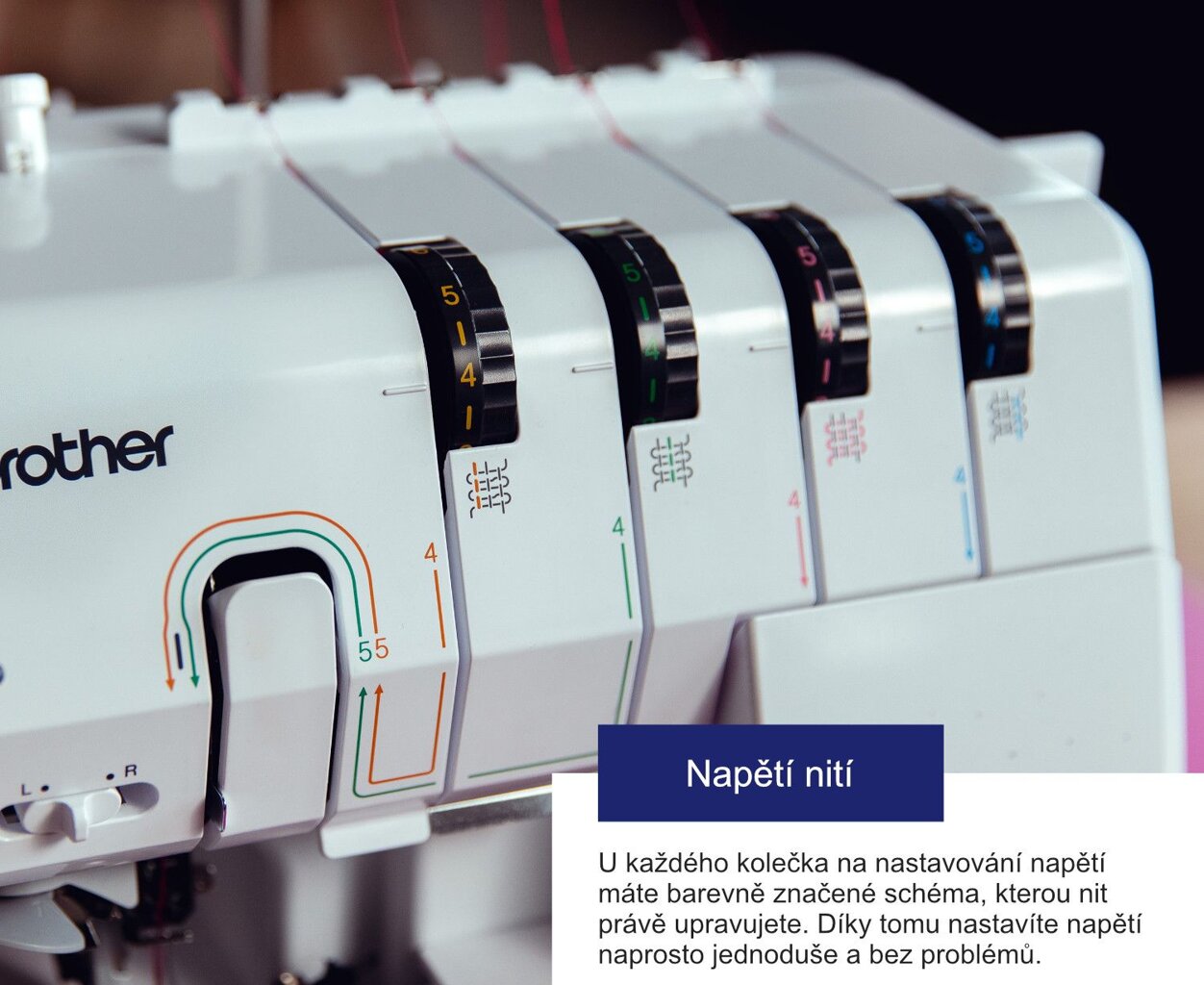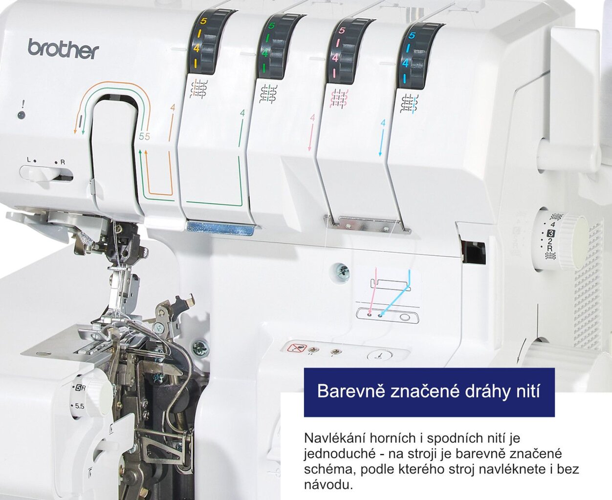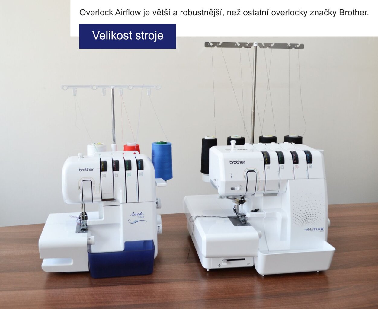 - Robustné celokovové telo stroja - tento overlock je výrazne väčší, než ste pri Brothere zvyknutí!