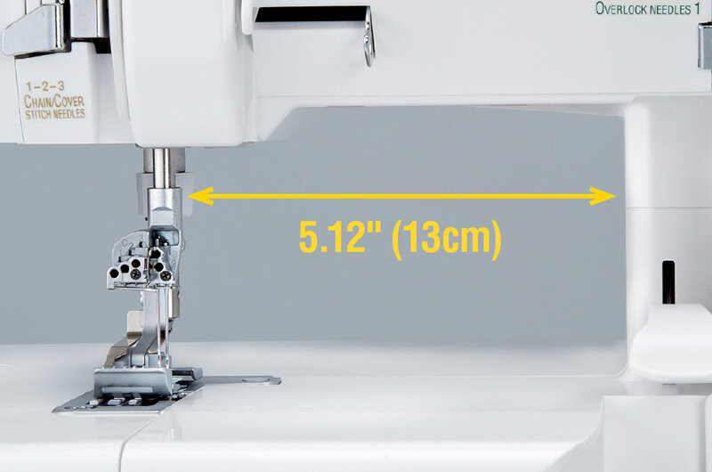 *pohodlné ovládanie zdvihu prítlačnej pätky na pravej strane stroja, kde je umiestnená aj páčka diferenciálneho posunu.