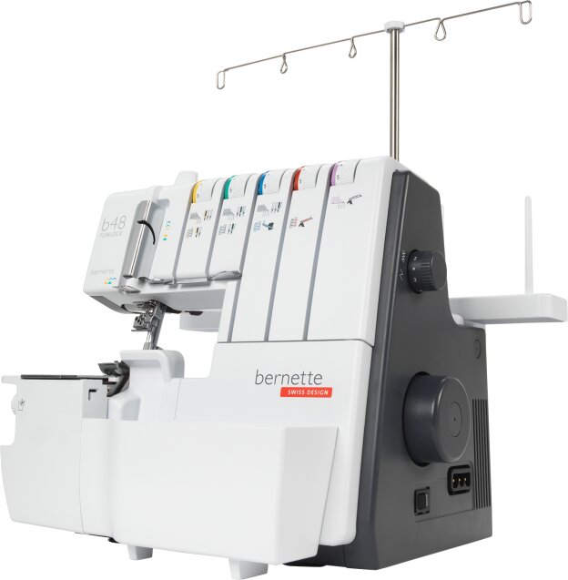 Overlock - coverlock Bernette b48 Funlock je 5, 4, 3 a 2-nitný overlock pre domáce šitie, ktorý šije aj spodkom krycí (coverlockový) steh. Coverlock je vybavený diferenciálnym podávaním a ďalšími funkciami.