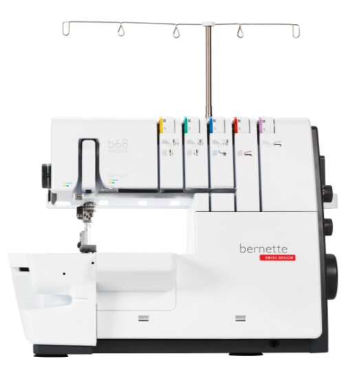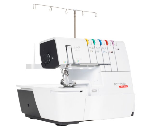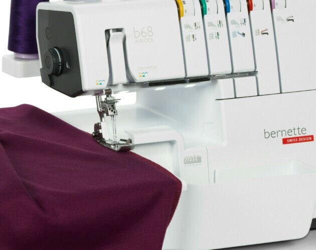 Bernette b68 Airlock je 2, 3, 4 a 5-nitný stroj na šitie overlockových, bielizňových, retiazkových a kombinovaných stehov. Kombinácia overlocku s coverlockom dokonale doplní Váš šijací stroj. Jeho obsluha je komfortná vďaka navliekaniu vzduchom. Rozširujúci prídavný stolík Vám zaistí dokonalý priestor pre Vaše projekty.