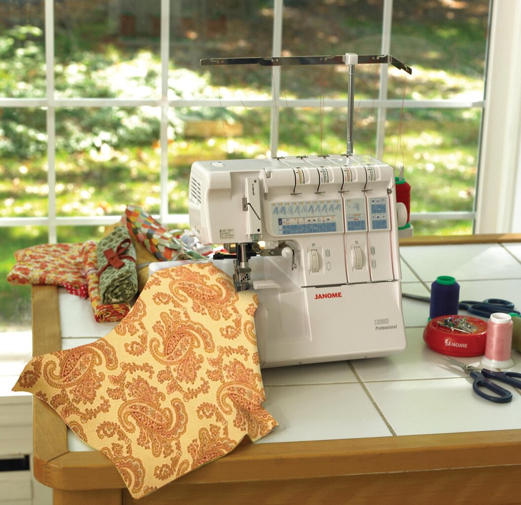 Overlock - coverlock Janome 1200D Professional je 2, 3, 4 a 5-nitný overlock a coverlock. Tieto overlocky vedia šiť dvoch nitný retiazkový steh, dvoch, troch a štyroch nitný obnitkovací steh, dvoch a troch ihlové spodkom krycie bielizňové stehy i