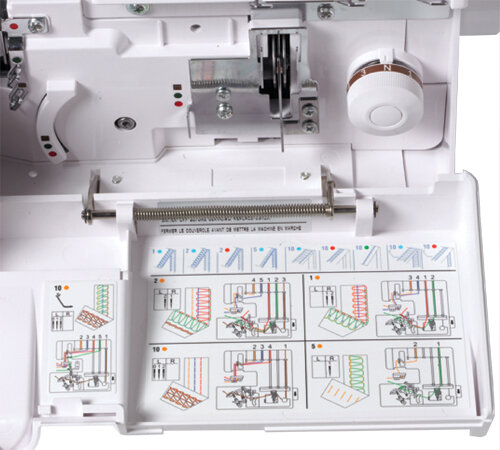 - Objednajte si súčasne kvalitné a napriek tomu cenovo výhodné overlockové nite v 5000 m návinoch a ihly vhodné pre tento overlock (každú farbu nití po 4 ks, pretože sa jedná o 4-nitný overlock).