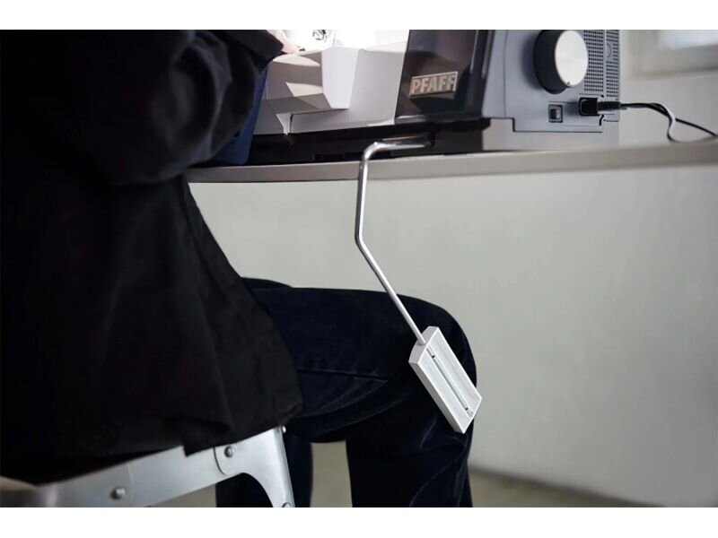 - Kolenná páka - uľahčuje prácu s materiálom na stroji. V momente keď potrebujete mať obe ruky na materiáli, je možné jednoduchým pohybom kolena zdvihnúť prítlačnú pätku.