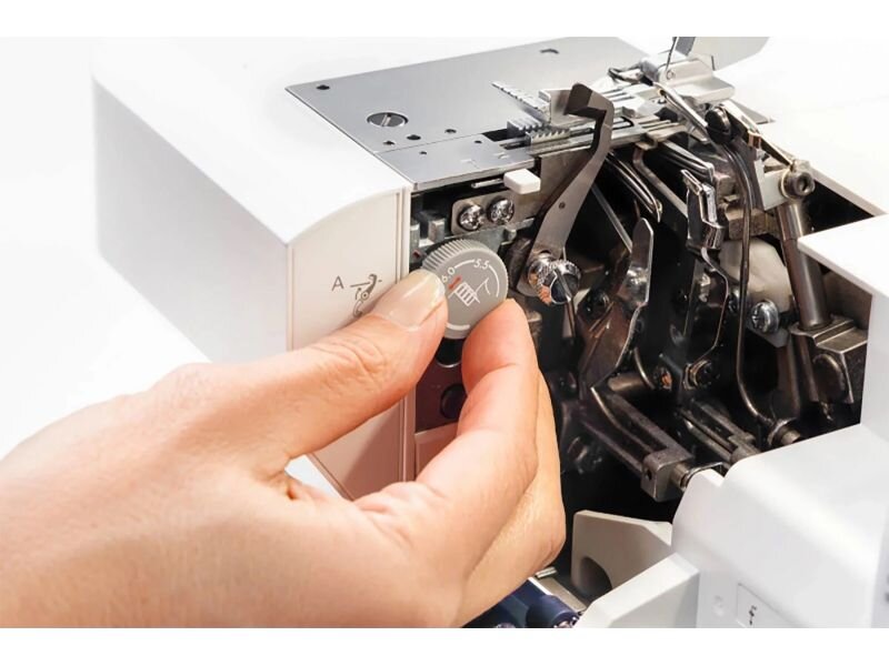 - Nastaviteľná dĺžka stehu, šírka orezu aj prítlak pätky - presné nastavenie zaisťuje vždy čisté okraje pre širokú škálu látok, sily materiálu a techník šitia.