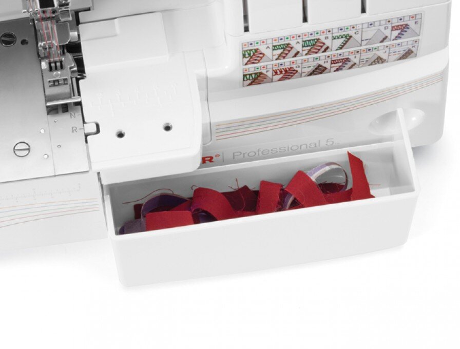 - Šitie s horným nožom alebo bez neho - skúsenejším krajčírkam umožní overlock šitie krásnych dekoratívnych stehov po vyradení funkcie odstrihu.