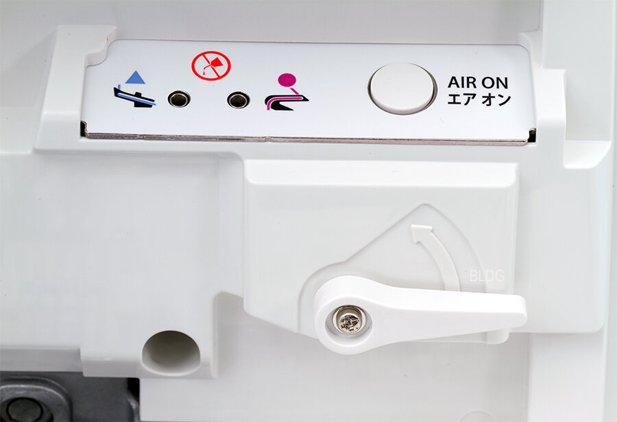 - Vzduchové navliekanie oboch slučkovačov - iba vložíte niť do navliekacieho portu a stlačíte tlačidlo