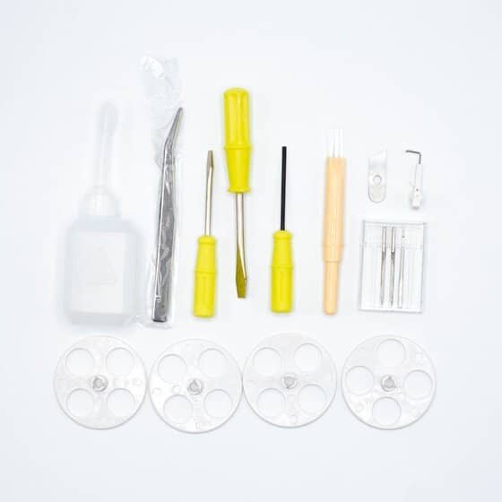 - Objednajte si súčasne kvalitné a napriek tomu cenovo výhodné overlockové nite v 5000 m návinoch a ihly vhodné pre tento overlock (každú farbu nití po 4 ks, pretože sa jedná o 4-nitný overlock).