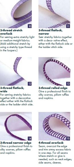 Stehy, ktoré šije overlock Hobbylock 2.0 Pfaff: