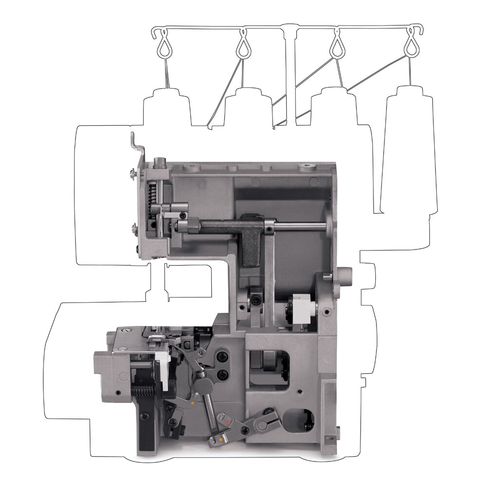 - Objednajte si súčasne kvalitné a napriek tomu cenovo výhodné overlockové nite v 5000 m návinoch a ihly vhodné pre tento overlock (každú farbu nití po 4 ks, pretože sa jedná o 4-nitný overlock).