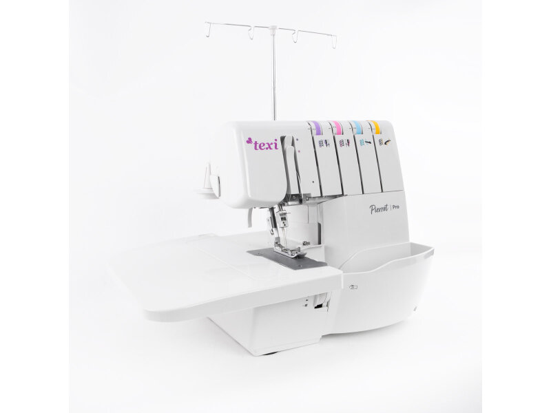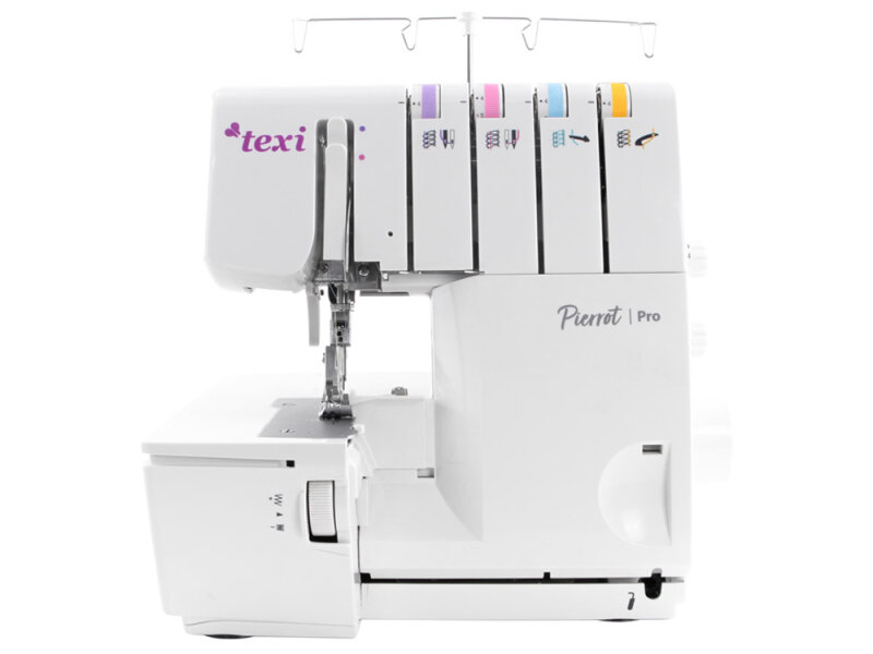 Overlock Texi Pierrot PRO je 2, 3, 4-nitný overlock pre domácnosť aj pokročilejšie šitie. Má rozširujúci stolík v základnej výbave. Ponúka nastaviteľnú dĺžku stehu a šírku orezu a pohodlnú prácu vďaka kolennej páke.roja.