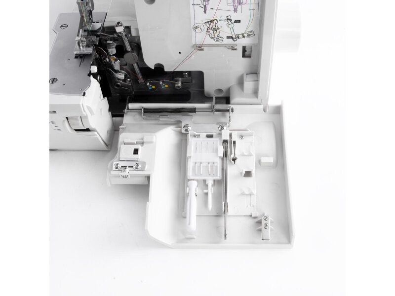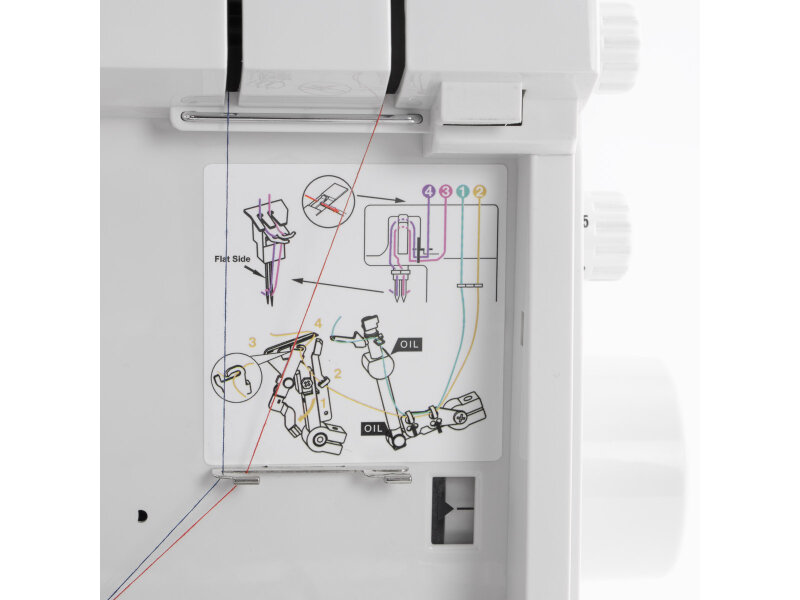 - Objednajte si súčasne kvalitné a napriek tomu cenovo výhodné overlockové nite v 5000 m návinoch a ihly vhodné pre tento overlock (každú farbu nití po 4 ks, pretože sa jedná o 4-nitný overlock).