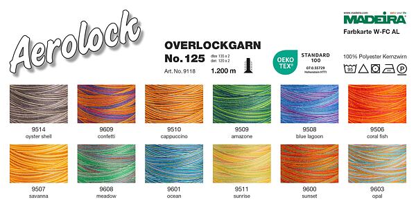 Overlocková niť PES Madeira Aerolock 125 (1200m) melírovaná je polyesterová overlocková niť prémiovej kvality pre šitie odolných a čistých švov s melírovanou farbou.