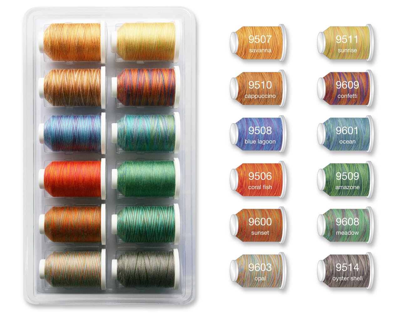 Overlockové nite PES Madeira Aerolock 125 (12x1200m) je sada polyesterových overlockových nití v boxe. Prémiová kvalita na šitie odolných a čistých švov. Súprava melírovaných overlockových nití.