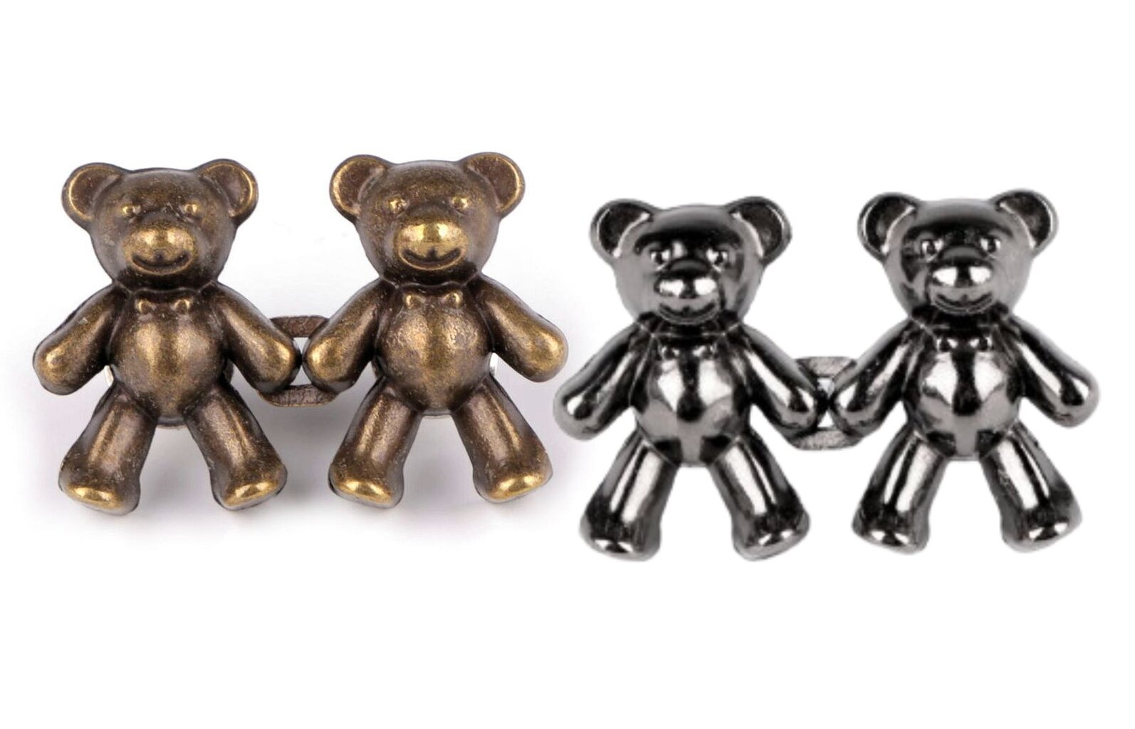 Ozdobné zapínanie v podobe medvedíkov pre štýlové zapínanie alebo rýchle a efektívne zúženie pása nohavíc. Medvedíky v prevedení čierny nikel alebo staromosadz.