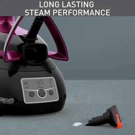 Parní generátor Tefal je vybaven systémem vyjímatelného svěrače vodního kamene, což zajišťuje dlouhodobý parní výkon a snadnou údržbu.