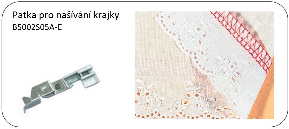 Pätka na našívanie čipky - overlocky Baby Lock je pätka, ktorú je možné dokúpiť pre overlocky Baby Lock. Táto pätka umožňuje prišívanie čipky.