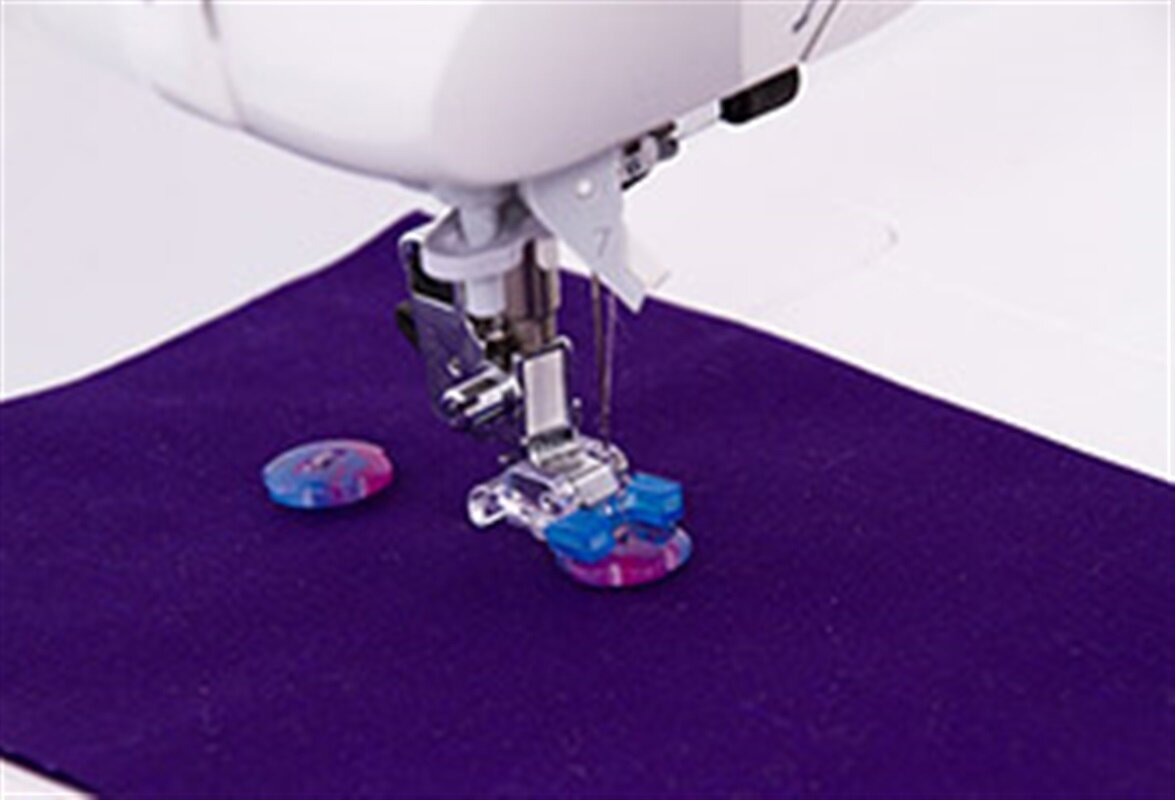 Pätka na prišívanie gombíkov - Juki rad F, G, DX, NX 7 je voliteľné príslušenstvo, ktoré je možné dokúpiť pre šijacie stroje Juki HZL rady F, G, DX a NX 7. Pätka slúži na prišívanie gombíkov rôznych veľkostí.