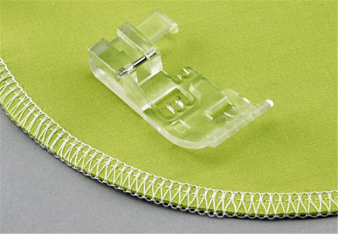 Pätkou je možné šiť retiazkový alebo 3 a 4 nitný overlockový steh. Vďaka priehľadnému vzhľadu pätky, je dobre vidieť na šitý materiál.