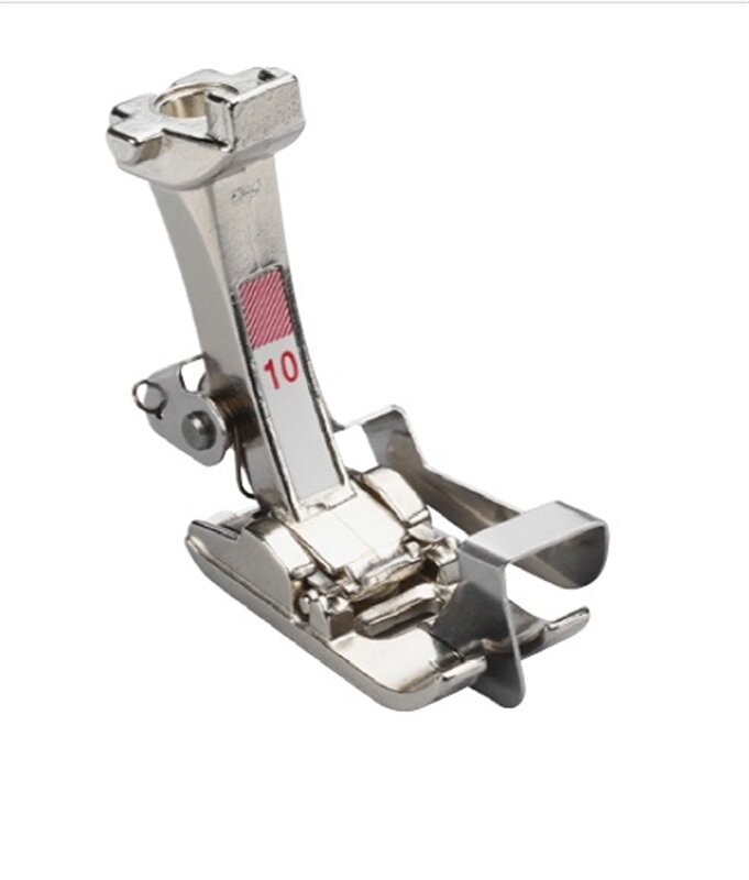 Pätka na zošívanie okrajov č. 10 je prispôsobená aj na našívanie čipiek a ozdobných okrajov, hodí sa aj na ozdobné prešívanie okrajov, plisé a lemov. Vodítko uprostred pätky napomáha rýchlo a ľahko šiť švy dokonale rovnobežné s okrajom látky. Kovové vodítko na pätke umožňuje ľahké a presné prešívanie hrán, švov a záhybov. Je vhodné na ozdobné prešívanie alebo spevnenie okrajov.