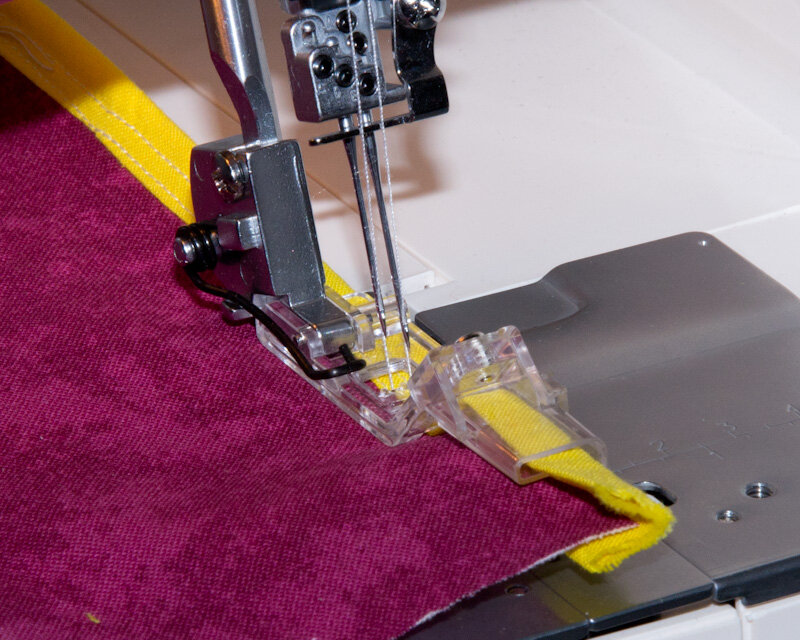 Pätka so zakladačom lemovky - coverlocky Merrylock je praktické príslušenstvo určené na obšívanie látky lemovkou (prúžkom látky), ktoré je možné dokúpiť pre coverlocky Merrylock MK 3040, MK 4050, MK 4055, c/overlock MK 3050 CL a MK 40